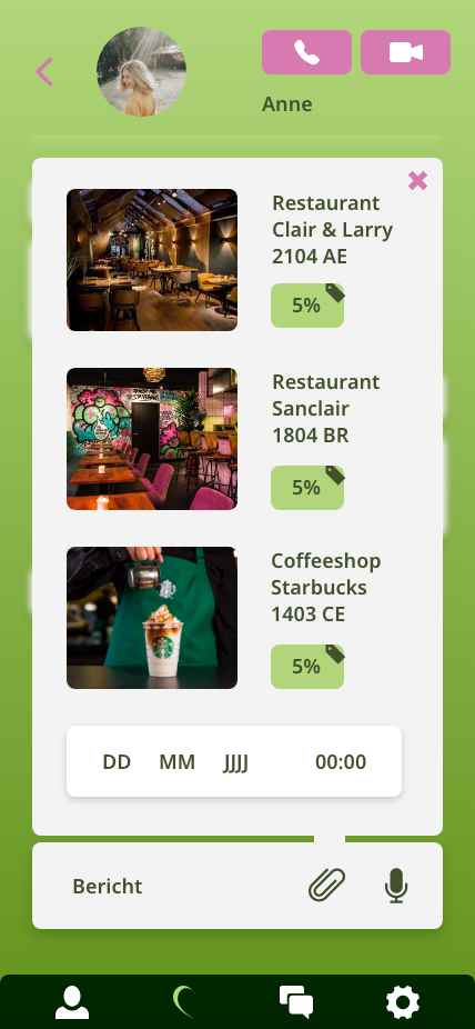 Ons doel was om op een creatieve manier user aware sensoren te verwerken in een dating app, waardoor de gebruiker een unieke ervaring ondergaat. Hierin willen we uit onze datameting de gebruiker helpen te ‘matchen’. We hebben hierbij een driestappenplan opgesteld die de gebruiker doorloopt in de applicatie om van twarrel relatie naar een echte relatie te gaan. We willen de matchers op interesses gebied dichter bij elkaar brengen en hierin de moeizame stappen luchtiger maken. In elke stap is de locatie sensor van belang om de gebruikers te begeleiden naar overeenkomstige interesses en date bestemmingen.