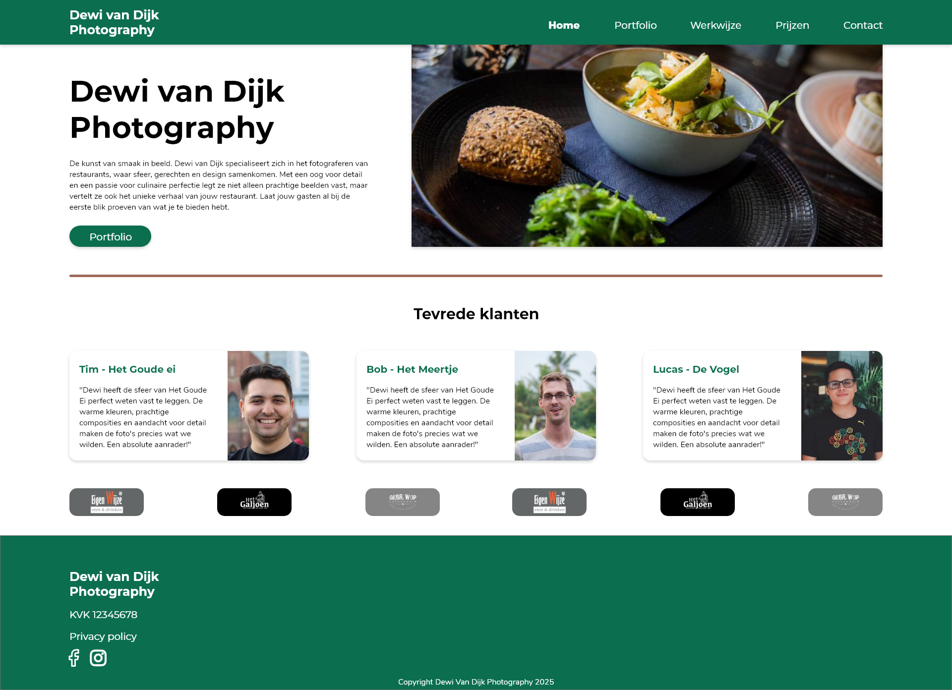 Ze wil een professionelere uitstraling en daarom heeft ze behoefte aan een website waarmee potentieel nieuwe klanten meer informatie kunnen vinden over haar en wat zij kan, en dan makkelijk contact met haar kunnen opnemen als zij interesse hebben.Het kunnen verschillende bedrijven zijn. Als voorbeeld geeft ze restaurants, een chocoladewinkel, een fietswinkel of een warehouse, maar ook portretfoto’s om mensen in een bedrijf mooi neer te zetten.